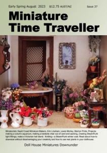 Doll House Miniatures Downunder Early Spring August 2023 $12.75 AUST/NZ Issue 37 Miniature Time Traveller Miniaturists: Kapiti Coast Miniature Makers, Kim Lineham, Lewis Morley, Marilyn Pride. Projects: making a column aquarium, making a bedside chair out of card and sacking, creating SteamPunk light Þttings, make a Victorian hall stand: Knitting — a SteamPunk winter coat. Read about how to downsize without disadvantaging your creativity and how to use real plants in your dollhouse.